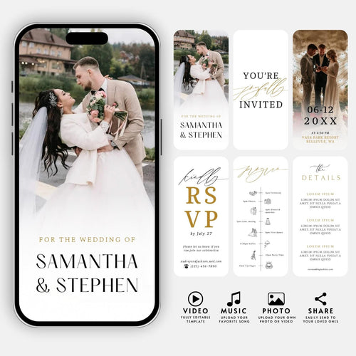 Animated Wedding Video Invitation: Minimalist Digital Phone Template (Canva Editable) -