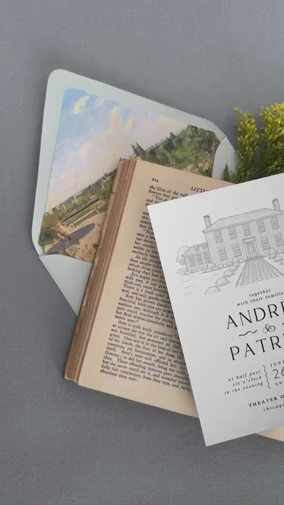 Custom Wedding Venue Sketch Invitation: Line Drawing (Digital)